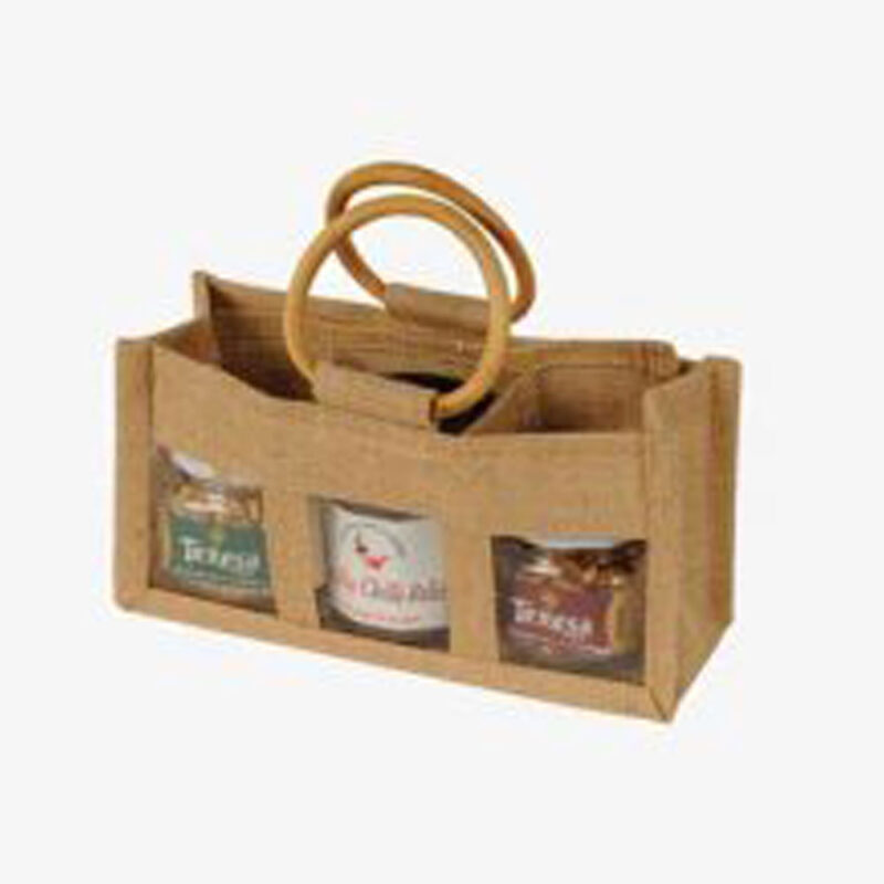 • Bag Description:  Jute Three Jar Bag with Gusset & Transparent Front