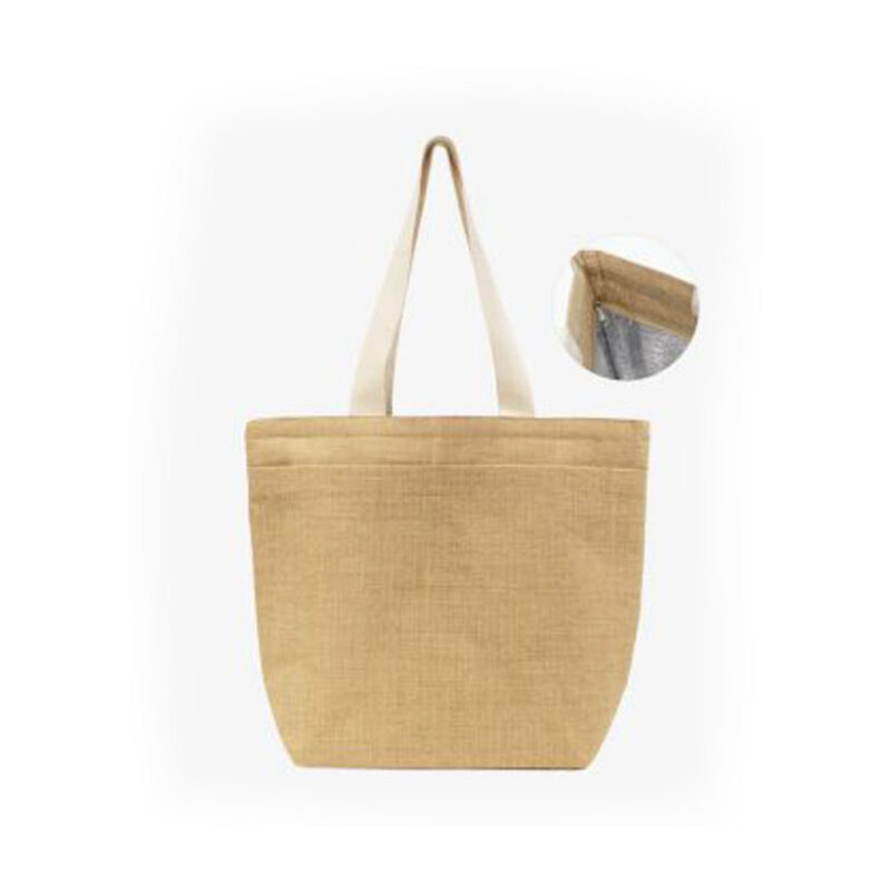 - Bag Description: Jute Tote Bag with Bottom Gusset, Insulation & Zipper